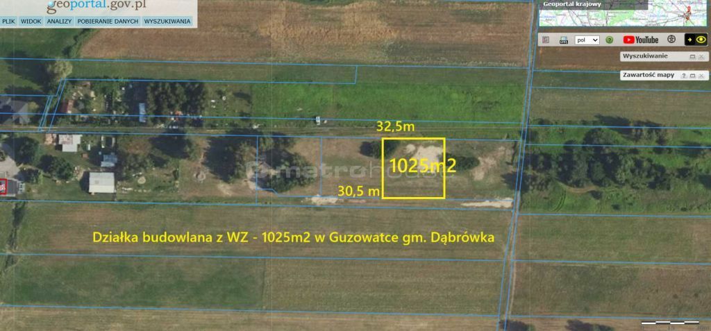 Powierzchnia: 1025 m² standardowy, wystarczający rozmiar pod budowę domu jednorodzinnego z ogrodem.